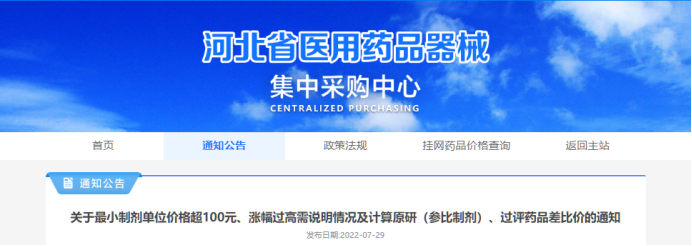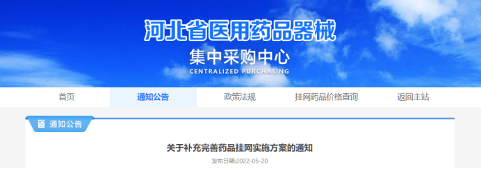 2022年5月,河北省医用药品器械集中采购中心发布《关于补充完善药品挂网实施方案的通知》,提出药品过评后可以涨价,但需提供充分理由。