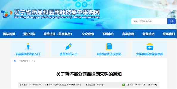 近日,辽宁省药品及医用耗材集中采购网发布《关于暂停部分药品挂网采购的通知》,对该省挂网采购的同品种药品(以规格计)通过仿制药质量和疗效一致性评价已达到3家以上的,暂停未过评药品的挂网采购,未挂网的未过评药品暂不纳入辽宁集中采购范围。