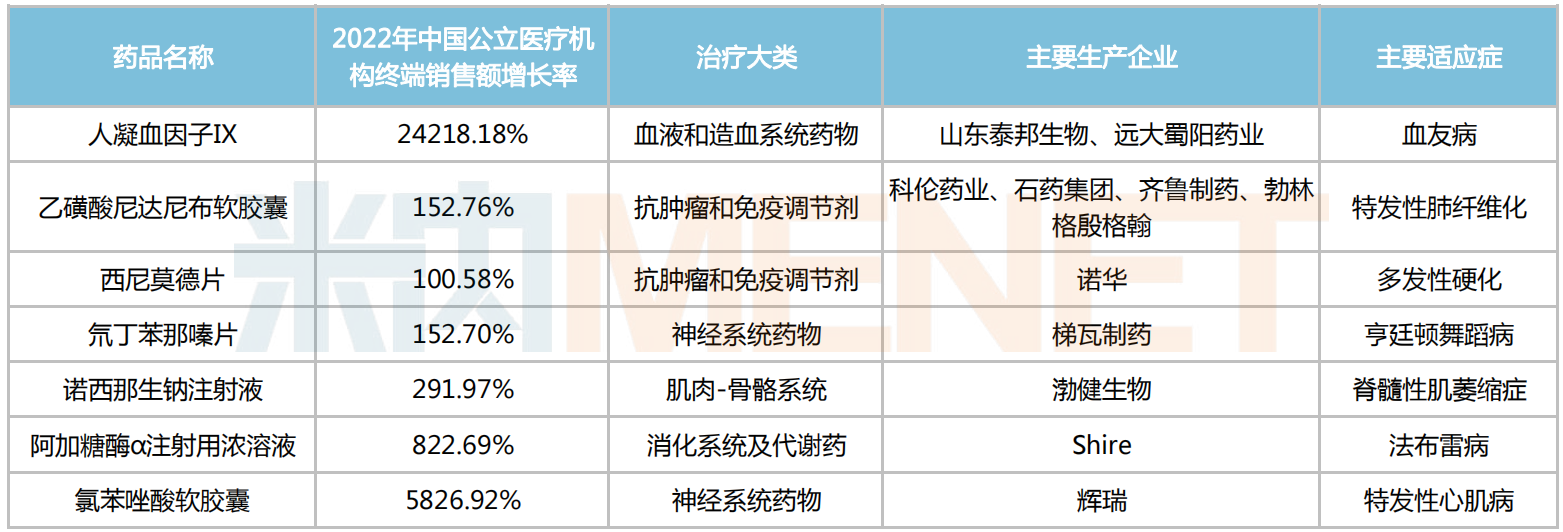 7个销售额增速超三位数的罕见病药