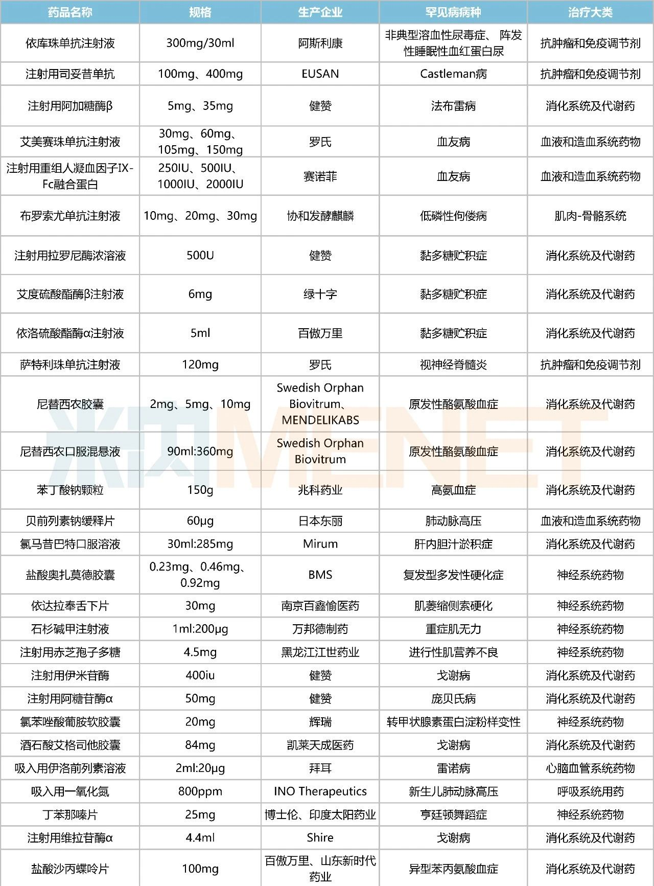 已纳入医保目录的罕见病药