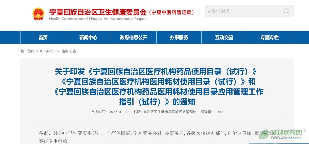 日前,宁夏卫健委下发通知,通知显示,影响宁夏所有公立医院的药品试行使用目录以及医用耗材试行使用目录早就已经开始推行。这份通知虽然昨日才刚刚公开,但从文件来看,通知印发的时间为2023年1月17日,正式推行时间为2023年2月1日。
