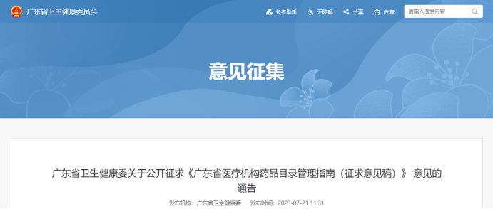 不仅如此,为进一步加强医疗机构药品目录规范管理,促进医疗机构科学合理配备药品,日前广东省卫健委发布关于公开征求《广东省医疗机构药品目录管理指南(征求意见稿)》(以下简称《指南》)意见的通告,拟放宽对医疗机构配备药品的限制。意见征求截止到7月26日,倒计时的指针已经越来越接近终点。