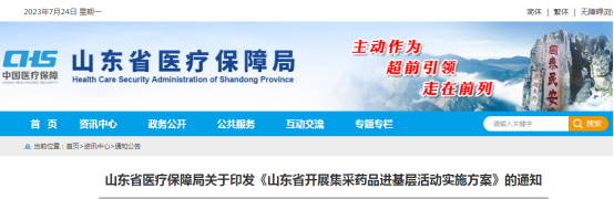 山东省医保局就在近期率先发布了《山东省开展集采药品进基层活动实施方案》,从在山东市场销售供应的国家和省级组织集采中选药品中,以市为单位确定辖区内纳入进基层活动的药品品种范围。每个市遴选确定的品种数量原则上不少于100种,并实行动态调整,企业按不高于集采中选价格供应。据了解,8月底前各基层药店、村卫生室等将正式启动销售集采药品。