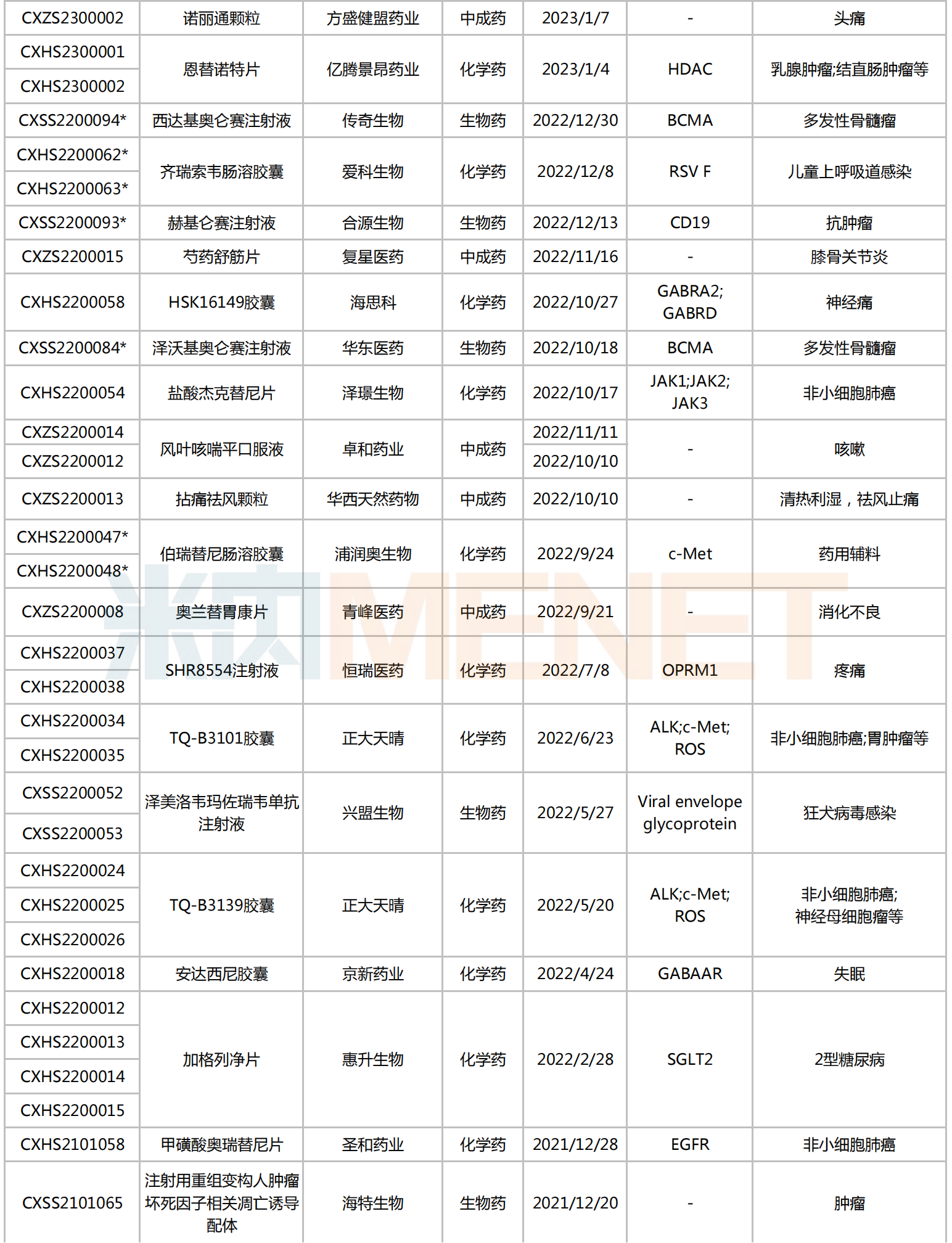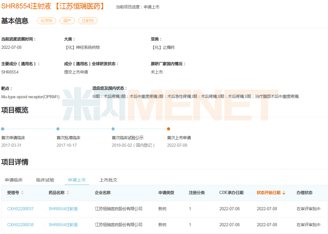 来源:米内网中国申报进度(MED)数据库