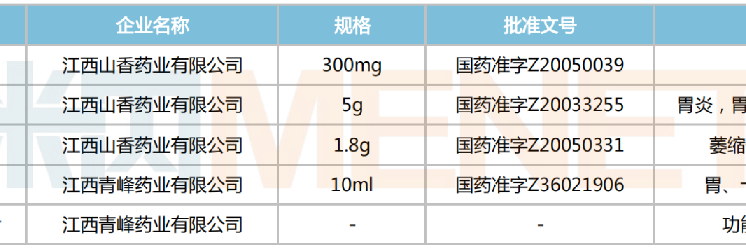 青峰医药获批上市的胃药中成药