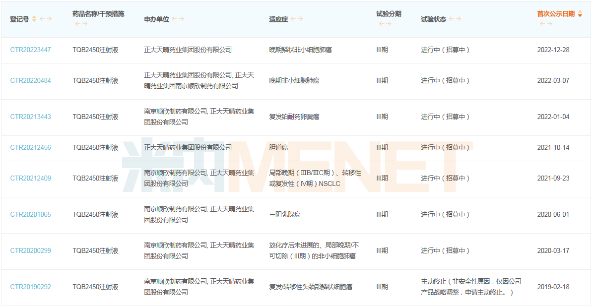来源:米内网中国临床试验数据库