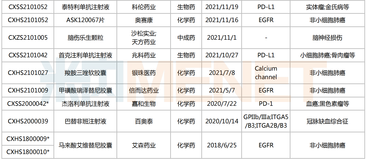 注:带*为纳入优先审评