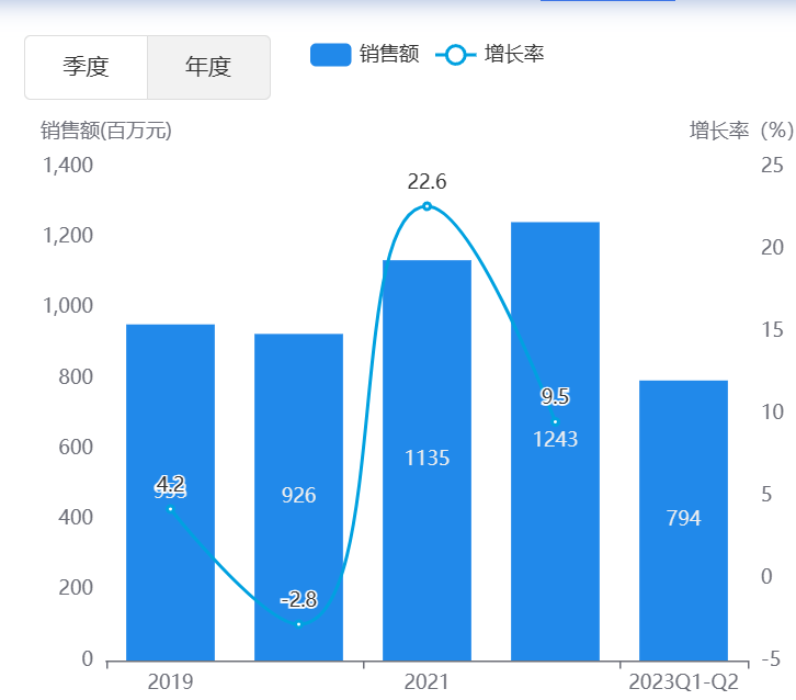 数据显示,左炔诺孕酮片市场集中在院外,2023上半年零售药店市场已达到8亿,同比增长32%,其中华润紫竹和吉瑞大药厂分别占有66%和22%的市场份额,参与玩家较少。