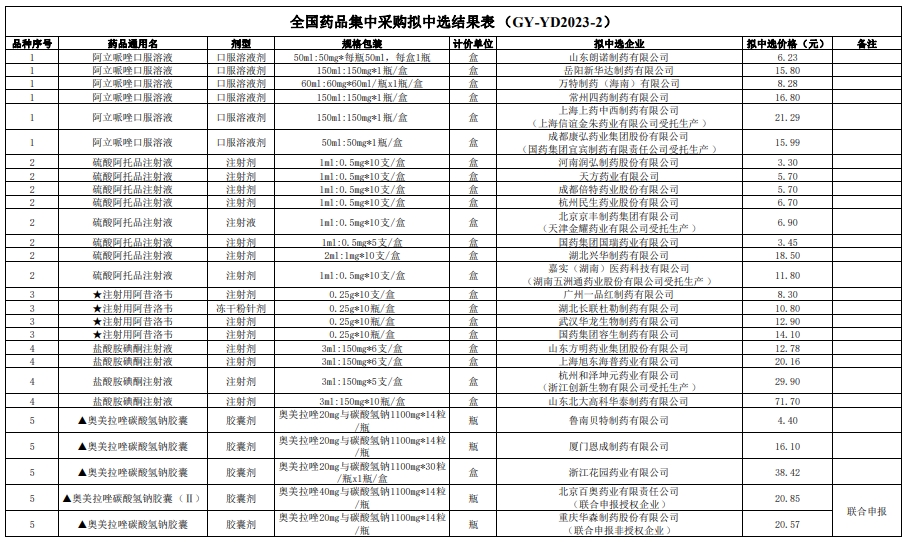 据介绍,医药企业积极参与本次集采,262家企业的382个产品参与投标。205家企业的266个产品获得拟中选资格,其中包括200家国内药企的260个产品,5家国际药企的6个产品(包括1个原研药和5个进口仿制药),投标企业拟中选比例约78%,平均每个品种有6.5家企业拟中选。本次集中采购企业中选率高,群众减负效果好,实现了“降负担、促发展、保供应”多重目标平衡。