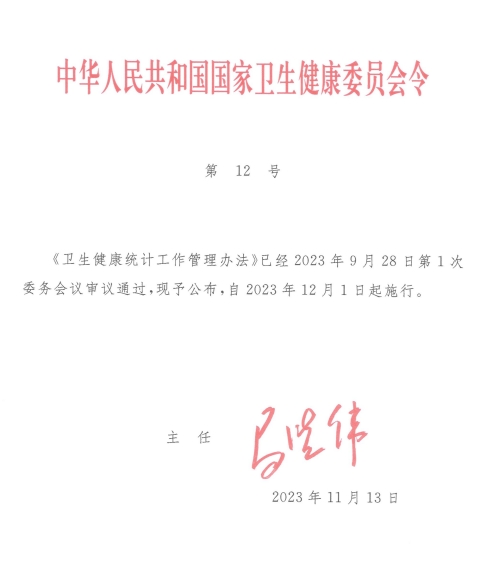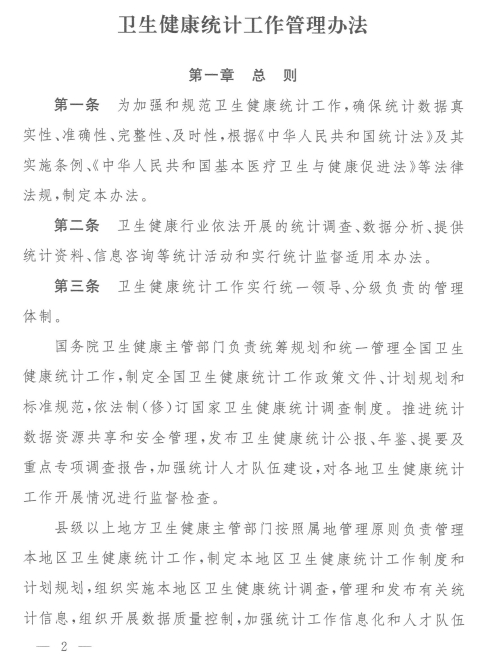 国家卫健委发布《卫生健康统计工作管理办法》