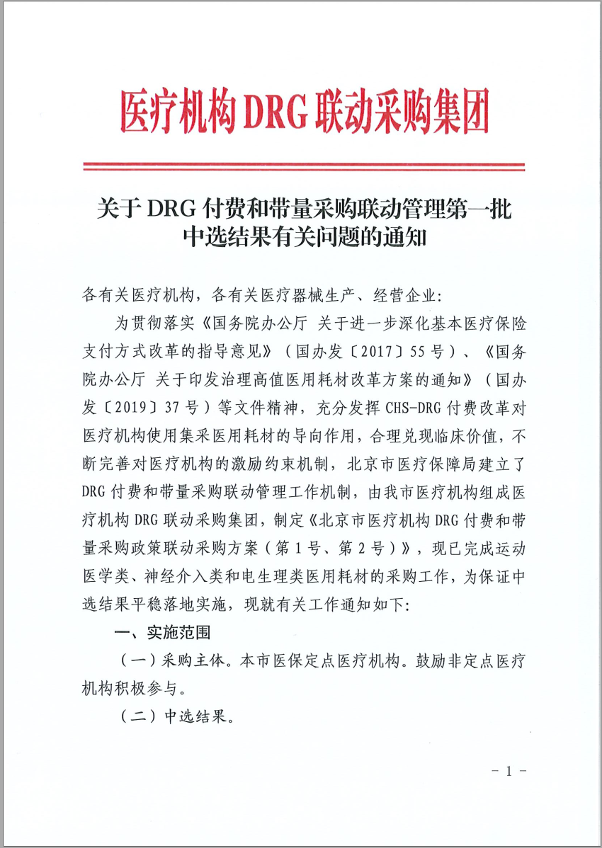 北京DRG集中采购中选结果,12月15日起执行