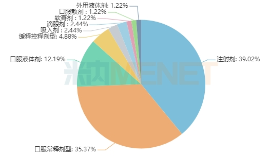 从剂型分布看,注射剂仍为“主角”,占比接近40%。随着集采的不断推进,叠加创新生物药的持续获批及商业化,近年来中国公立医疗机构终端注射剂(化学药+生物药)销售规模有所波动,但总体维持在600亿元以上;近年来口服液体剂新品获批数量增加,满足集采条件的品种数大幅度提升,未来在集采中的占比有望逐渐提升。
