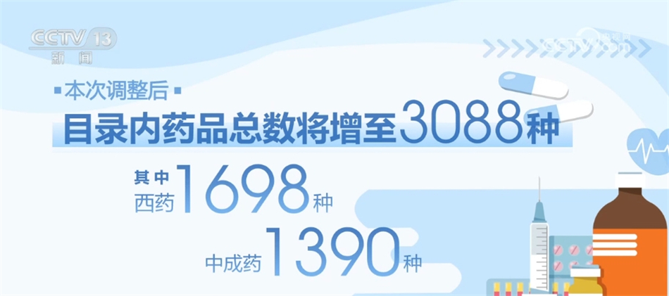 此次调整共新增126种药品,其中肿瘤用药21种,新冠、抗感染用药17种,糖尿病、精神病、风湿免疫等慢性病用药15种,罕见病用药15种(其中阿伐替尼片同为肿瘤用药),其他领域用药59种。同时,调出了1种即将撤市的药品。本次调整后,目录内药品总数将增至3088种,其中西药1698种、中成药1390种。