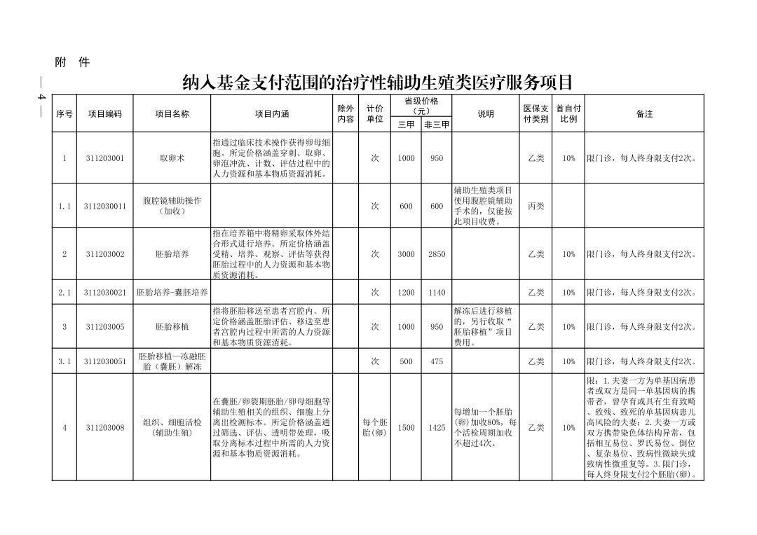 据河南省医疗保障局网站消息,河南将于9月1日起,将“取卵术”“胚胎培养”“胚胎移植”等8项国家确定的辅助生殖医保准入项目纳入医保支付范围。在此基础上,河南省还将“胚胎培养-囊胚培养”“胚胎移植—冻融胚胎(囊胚)解冻”“阴道(宫颈)内人工授精”“显微镜下切开取精术(加收)”等4项拓展加收项纳入医保支付范围。医保报销比例方面,河南规定不设起付线,全省职工医保和城乡居民医保首自付比例统一确定为10%,扣除先行自付部分后,统筹基金分别按70%和60%支付,支付额度计入基本医疗保险统筹基金年度最高支付限额。