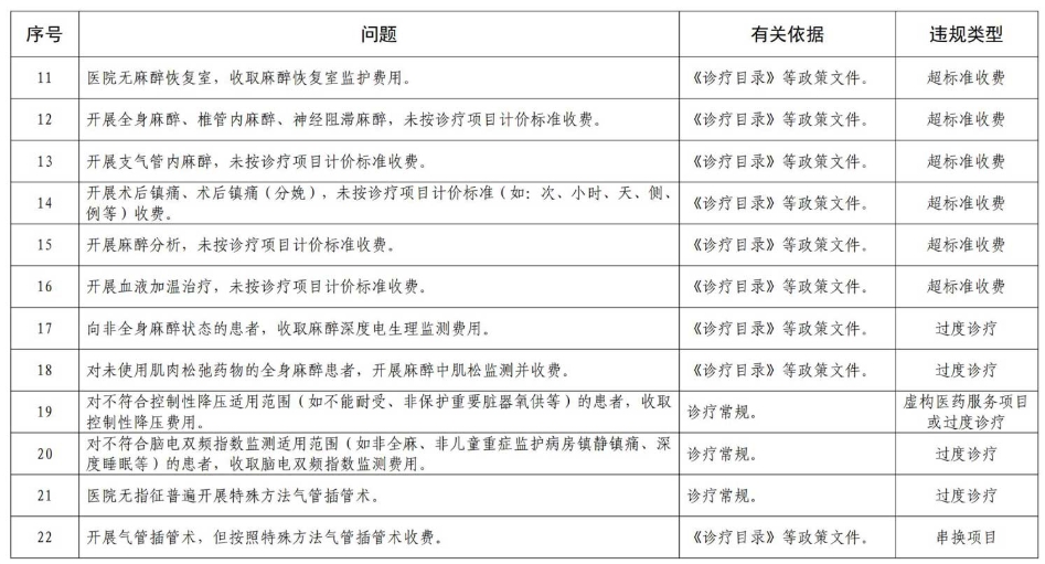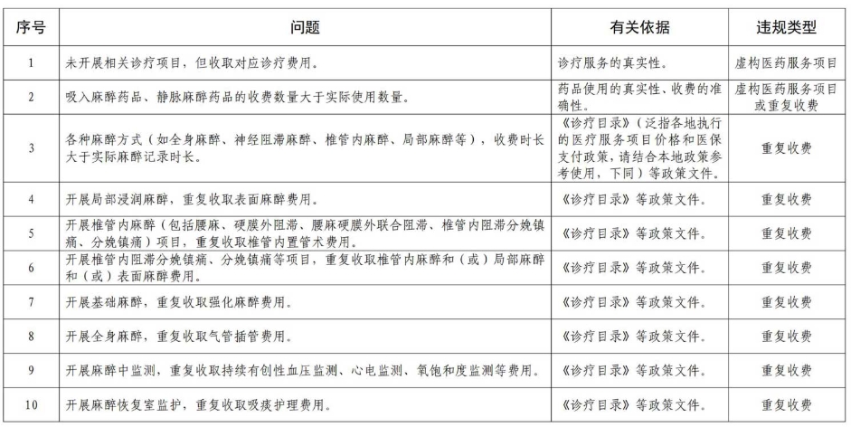 2?定点医疗机构违法违规使用医疗保障基金典型问题清单(2025版)——麻醉类