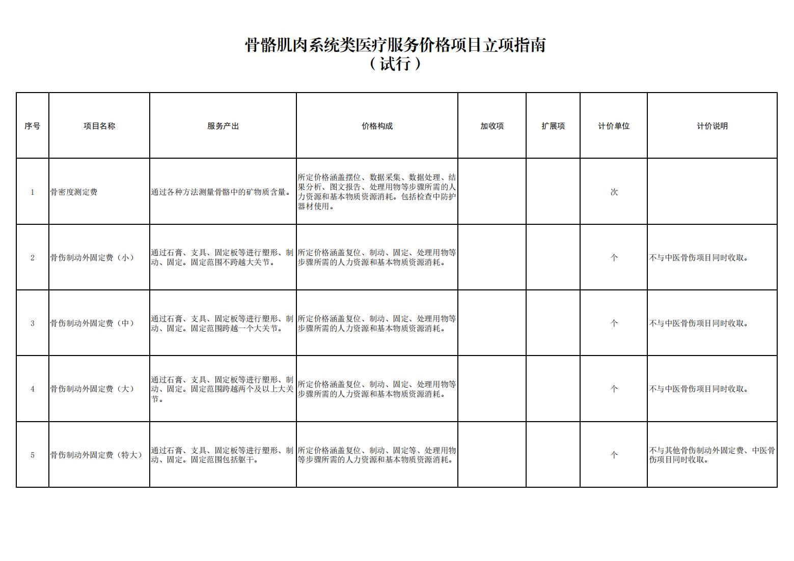 国家医保局印发《骨骼肌肉系统类医疗服务价格项目立项指南(试行)》