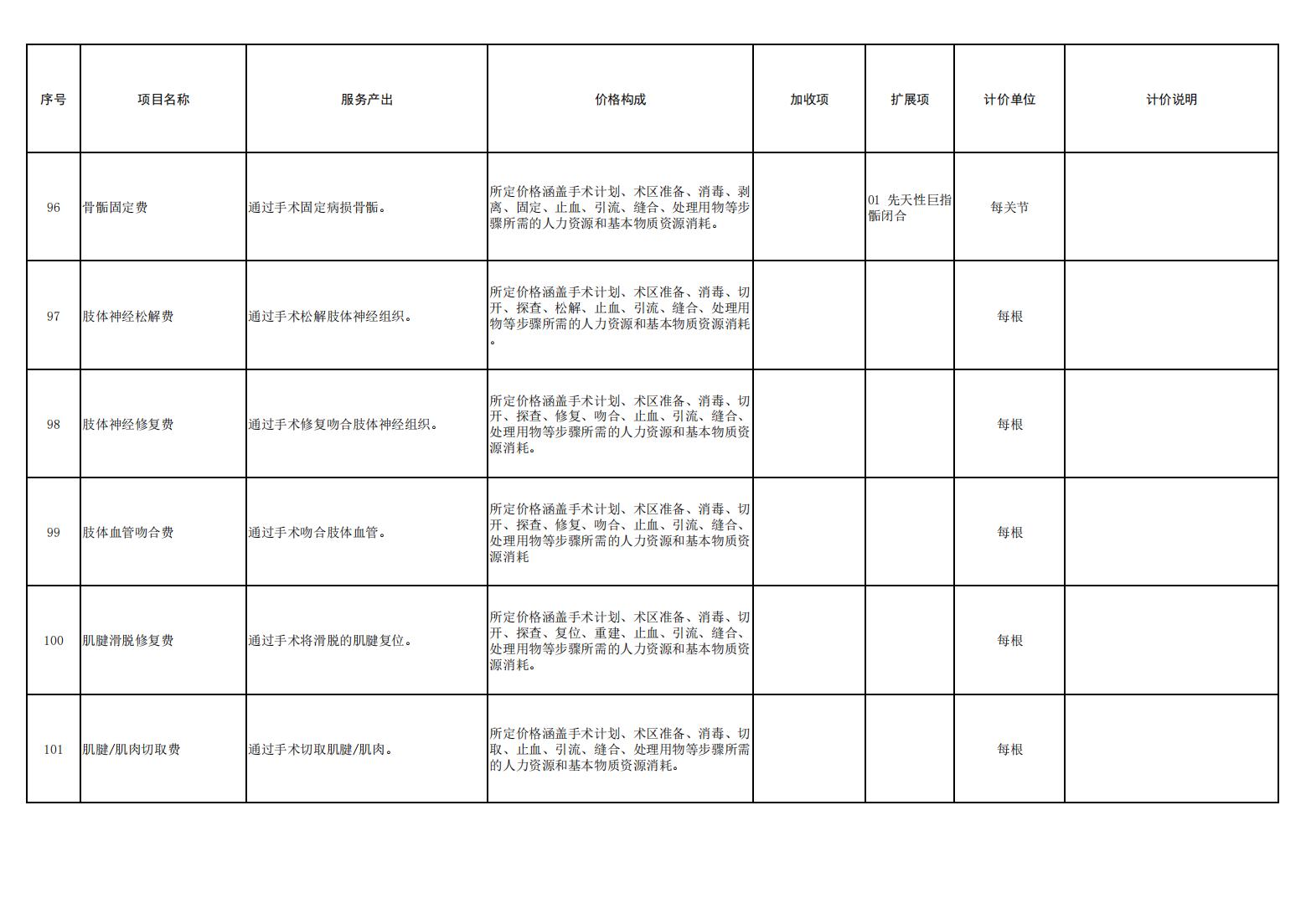 为贯彻落实《深化医疗服务价格改革试点方案》,推进全国医疗服务价格项目规范编制工作,按照“成熟一批、发布一批”的工作思路,近日国家医保局编制印发《骨骼肌肉系统类医疗服务价格项目立项指南(试行)》,参考2023年版医疗服务项目技术规范,将现行骨骼肌肉系统价格项目和技术规范项目映射整合为价格主项目109项、加收项16项、扩展项5项。下一步将指导各省医保局参考,结合实际做好对接落实,制定全省统一的价格基准,由具有价格管理权限的统筹地区对照全省价格基准,上下浮动确定实际执行的价格水平。