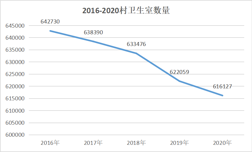 从折线图上,我们可以明显看到,村卫生室数量逐年递减,而诊所数量则呈现递增的趋势。