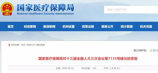 医药网9月25日讯 9月22日,国家医保局官网发布《国家医疗保障局对十三届全国人大三次会议第7133号建议的答复》(下称《7133号答复》)。
