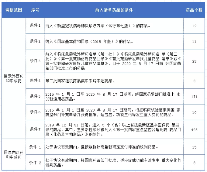 2020年国家医保药品目录调整纳入名单药的条件及药品个数
