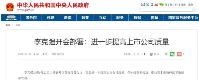 医药网9月25日讯 提高上市公司质量,对于促进资本市场健康发展和拉动实体产业转型升级至关重要。9月23日,国务院常务会议召开,针对进一步提高上市公司质量工作进行部署,旨在保护投资者权益,推动资本市场持续平稳健康发展。