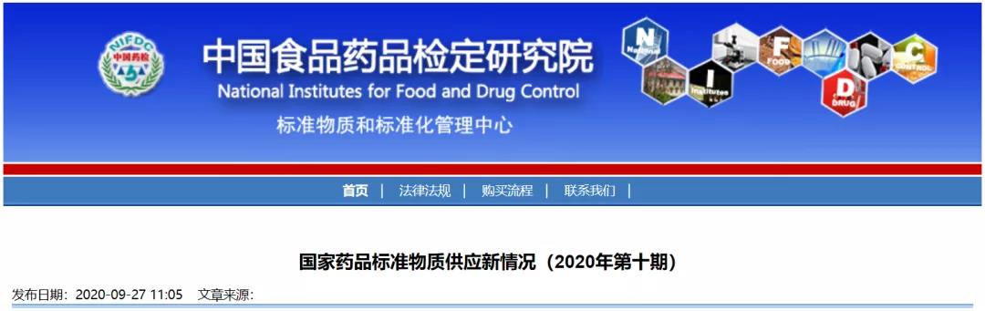 医药网9月29日讯 9月27日中国食品药品检定研究院发布国家药品标准物质供应新情况(2020年第十期),包括18个即将上市的新品种,24个即将换批品种的预计上市时间,24个即将失效品种的有效使用期限和4个停用品种名单。