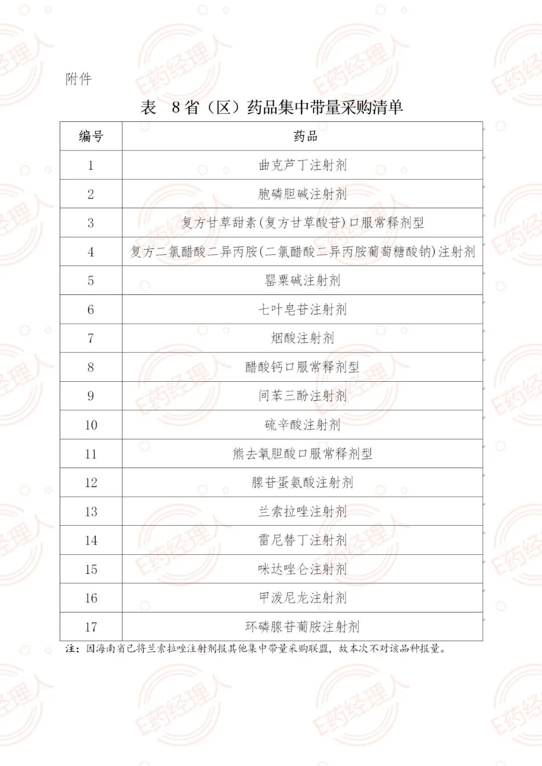 本次省际联盟集中带量采购工作由四川省医疗保障局负责牵头组织,四川省药械招标采购服务中心负责具体操作。至于具体的采购量、采购方式、采购要求等暂未公布,但公布了此次8省区联盟集采的药品,共涉及17个品种,其中14个为注射剂。