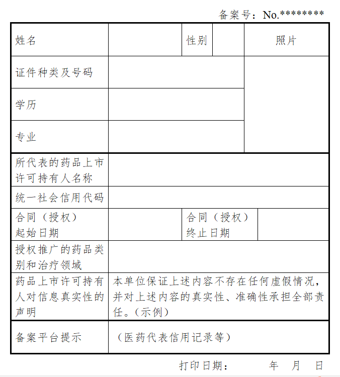 提交完备案信息后,备案平台自动生成医药代表备案号。