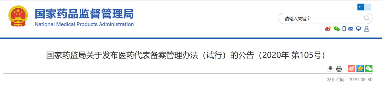 医药网10月9日讯 9月30日,国家医保局发布关于医药代表备案管理办法(试行)的公告: