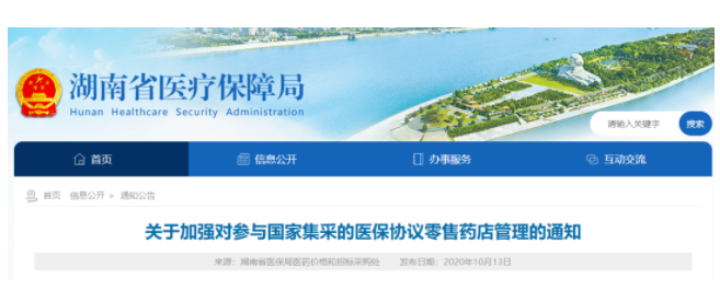 10月13日,湖南省医保局发布了《关于加强对参与国家集采的医保协议零售药店管理的通知》(以下简称《通知》)。