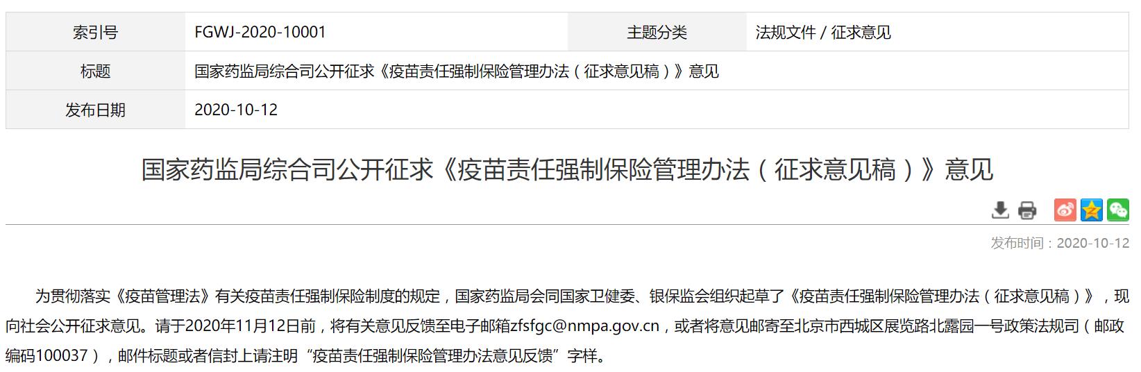 附疫苗责任强制保险管理办法(征求意见稿)