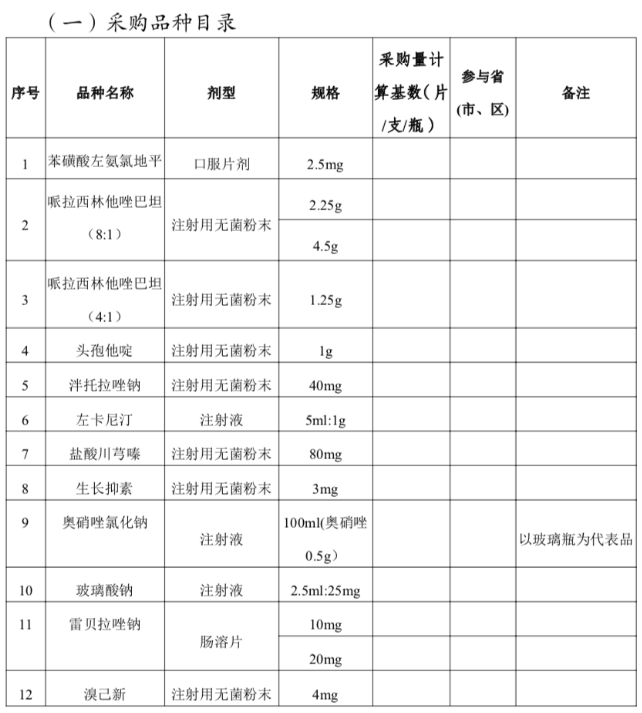 而哌拉西林钠他唑巴坦(8:1)、哌拉西林钠他唑巴坦(4:1)、 头孢他啶、盐酸川芎嗪、奥硝唑氯化钠、美洛西林、 头孢噻肟、丙戊酸钠、替加环素约定采购量计算基数,以 2019 年1月1日至2019年12月31日医疗机构上报采购需求量的60% 累加确定。