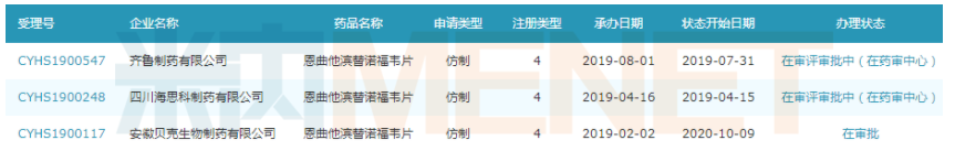恩曲他滨替诺福韦片待批企业