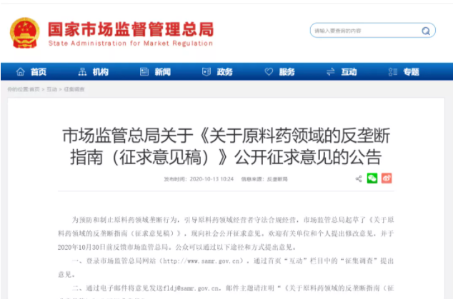 医药网10月16日讯 10月13日,国家市场监管总局发布《关于原料药领域的反垄断指南(征求意见稿)》(下称《指南》),向社会公开征求意见。希望借此预防和制止原料药领域垄断行为,引导原料药领域经营者守法合规经营。但对于这份指导意见的价值有多大,业内有不同的声音。