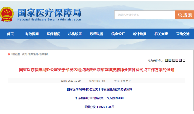 医药网10月20日讯 10月19日,国家医保局发布《关于印发区域点数法总额预算和按病种分值付费试点工作方案的通知》。根据文件要求,试点将以地级市统筹区为单位开展。用1-2年的时间,将统筹地区医保总额预算与点数法相结合,实现住院以按病种分值付费为主的多元复合支付方式。