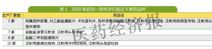 一些冷门产品如抗结核分枝杆菌的吡嗪酰胺片2020年也有4家企业进行一致性评价。