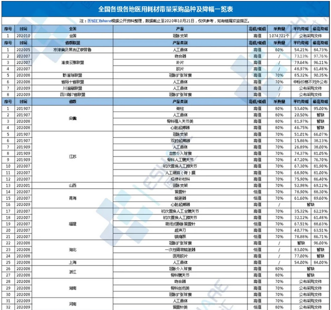 自2020年以来,全国范围内从市级到省级再到区域联盟的带量采购已经进行了60余次,其中以人工晶体、冠脉球囊、冠脉支架等为主的高值耗材更是频频出现在谈判桌上。