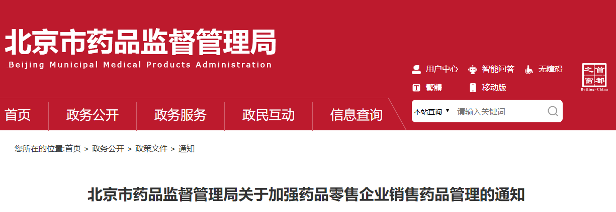 近日,北京市药监局发布了《关于加强药品零售企业销售药品管理的通知》(以下简称《通知》)。