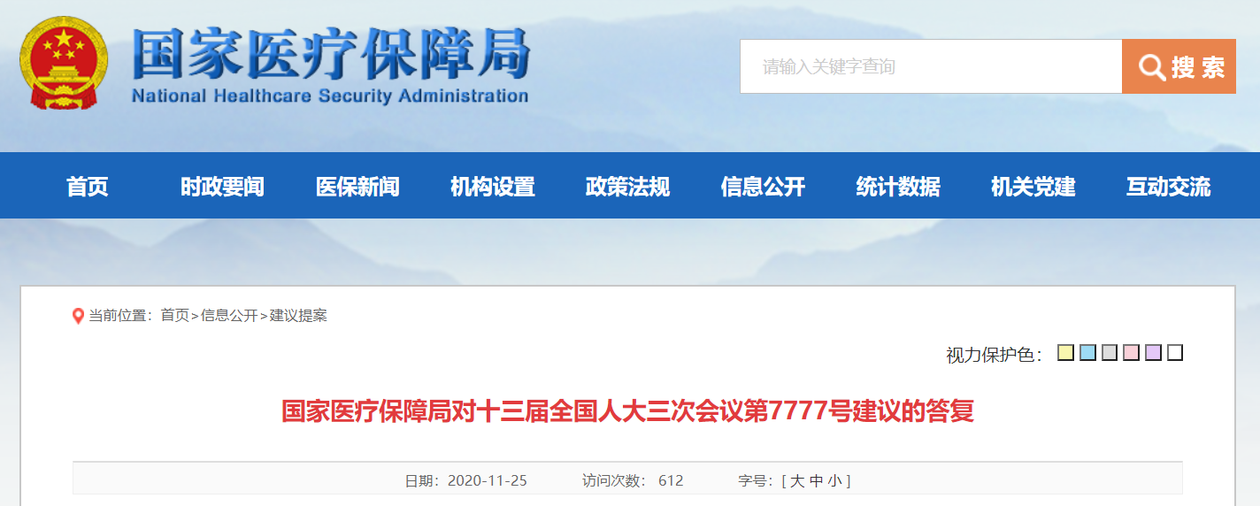 11月25日,国家医保局发布《国家医疗保障局对十三届全国人大三次会议第7777号建议的答复》(下称《7777号答复》)。