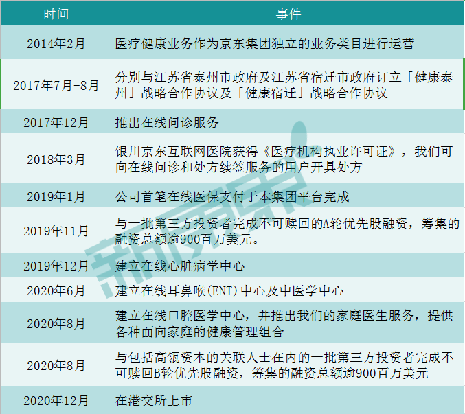 虽说正式成立仅为短短的19个月,但实际上,京东健康的起源最早可追溯到2011年——京东与九州通合资成立“京东好药师”,由此京东开始进军医药电商领域。2014 年2月,京东开始将医疗健康作为集团独立的业务类目进行运营,随后推出了线上问诊服务、家庭医生服务,同时建立专科中心等,不断完善在互联网医疗领域的布局。而今年的疫情,也让互联网医疗行业再迎资本热捧,推动了整个行业的快速发展。京东健康作为一家互联网医疗公司,在疫情的发展契机之下,在这种外部条件和内部条件都到了比较成熟的时机,终于选择了上市。可以说,疫情让京东健康走完了此前还要花上几年的时间才能走的一段路。