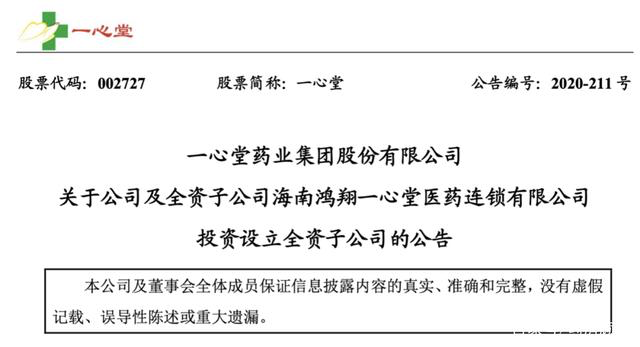据公告介绍,海南一心堂医药有限公司,为一人有限责任公司 ,注册资本1000万人民币,为海南一心堂100%控股。