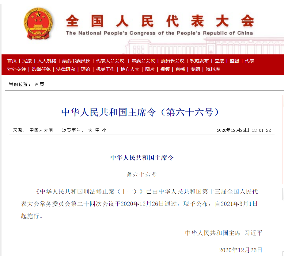 中华人民共和国刑法修正案(十一)