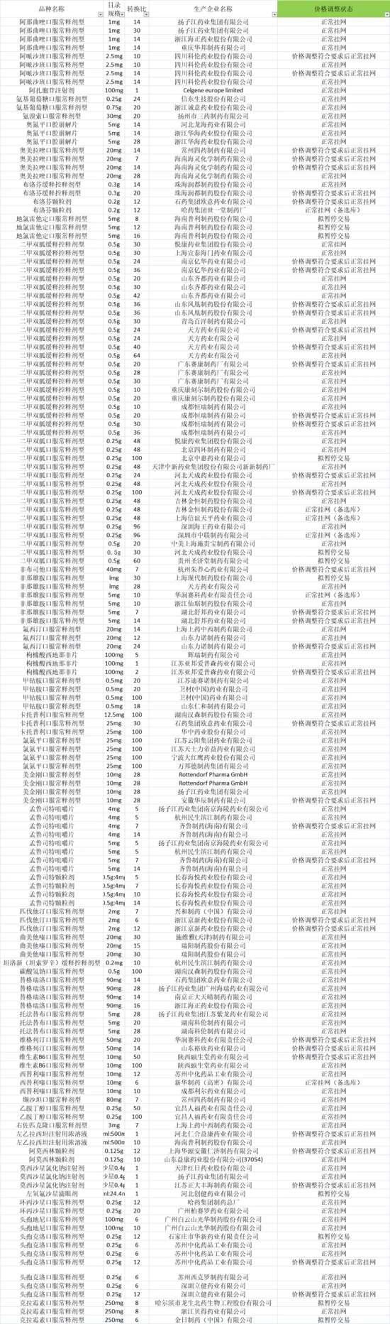 《通知》中,南京亿华、山东凤凰、天方药业、广东赛康、成都恒瑞、河北天成6家药企的二甲双胍口服常释剂型因多包装不符合差比价规则、价格调整后仍不符合暂停交易调价。