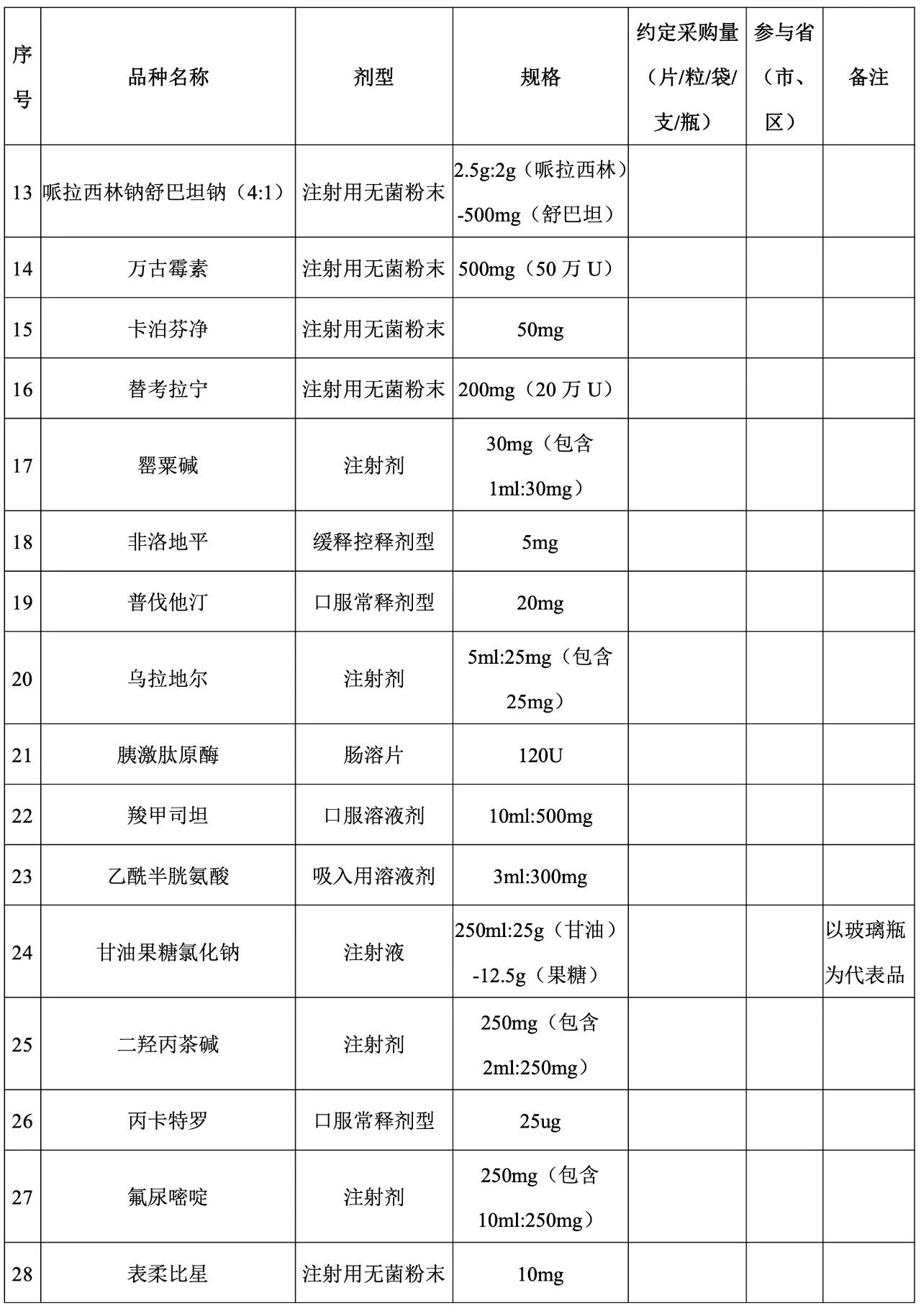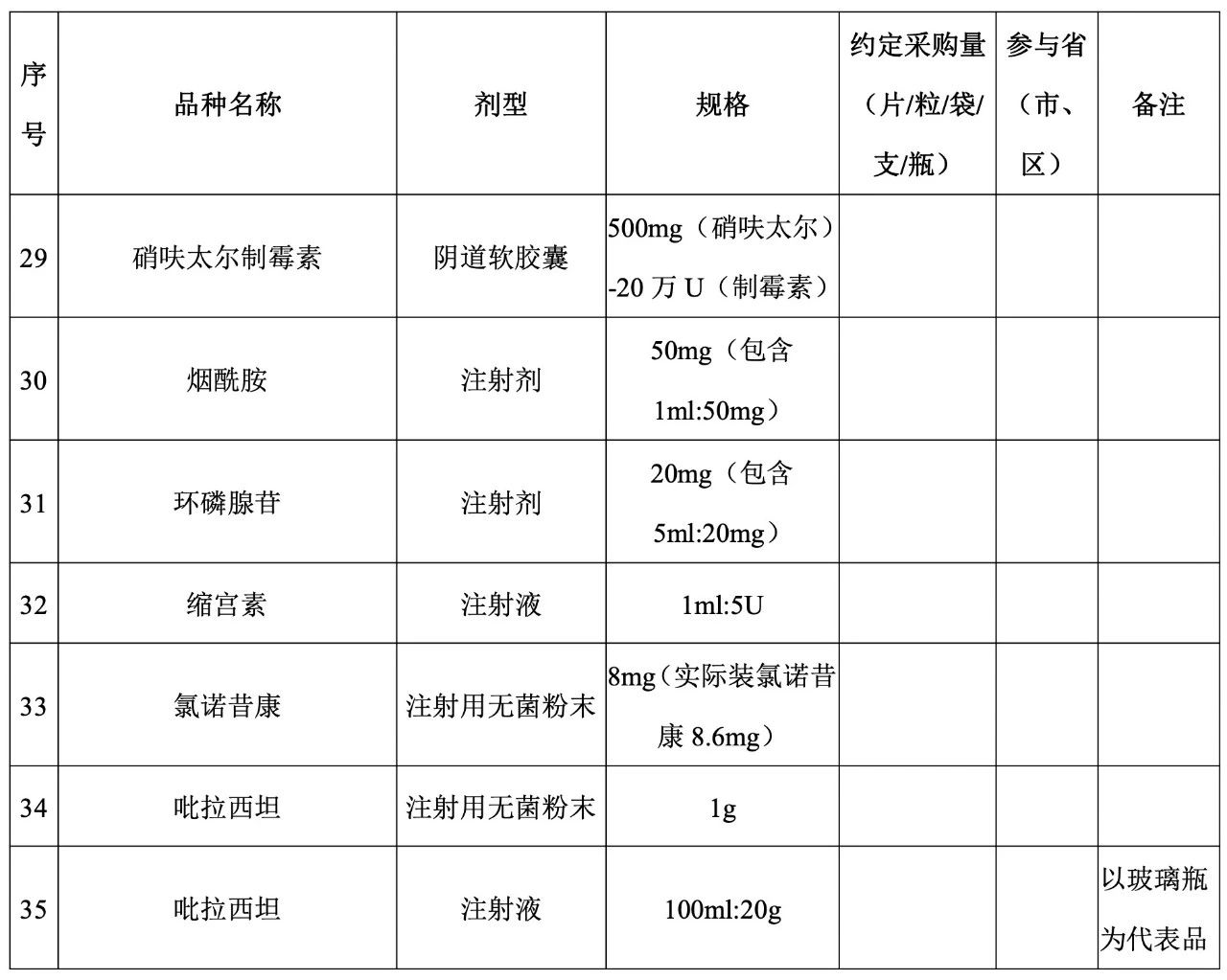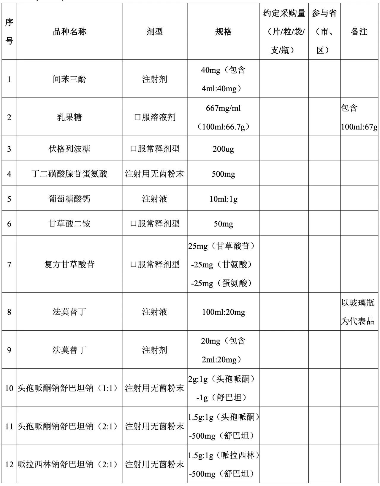 渝豫桂琼滇青宁新新疆兵团短缺药品联盟采购品种目录