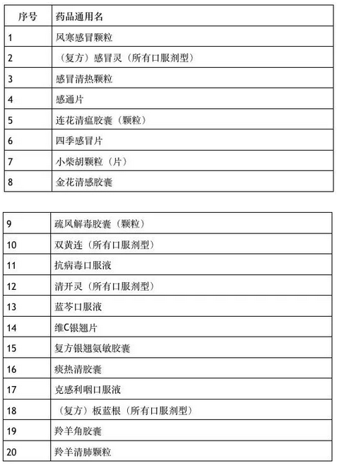 《目录》共涉及37种药品,包括连花清瘟胶囊(颗粒)、双黄连(所有口服剂型)、小柴胡颗粒(片)等20种中成药以及布洛芬(所有口服剂型)等17种化学药。