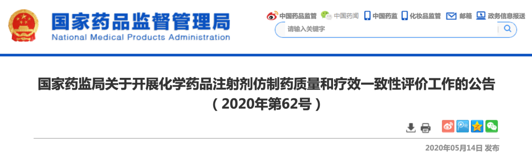 医药网5月15日讯 5月14日,国家药品监督管理局正式发布了《关于开展化学药品注射剂仿制药质量和疗效一致性评价工作的公告》。