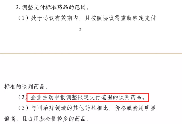 征求意见稿是:根据企业申报,经专家评审有必要调整限定支付 范围的谈判药品。