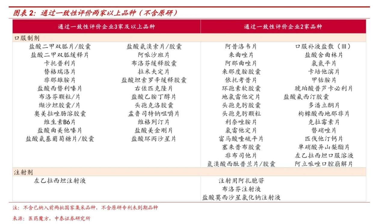 中泰证券之前的分析也认为,根据 4+7 试点、4+7 扩围、第二批国家集采的情况,纳入集采的品种基本是有仿制药过评企业较多的品种,第三批带量采购有可能继续沿用三家及以上的竞争模式,即 2 家及以上过评+1 家原研,预计过评企业家数在2家及以上(不含原研)的品种均可能纳入下一批国家集采。