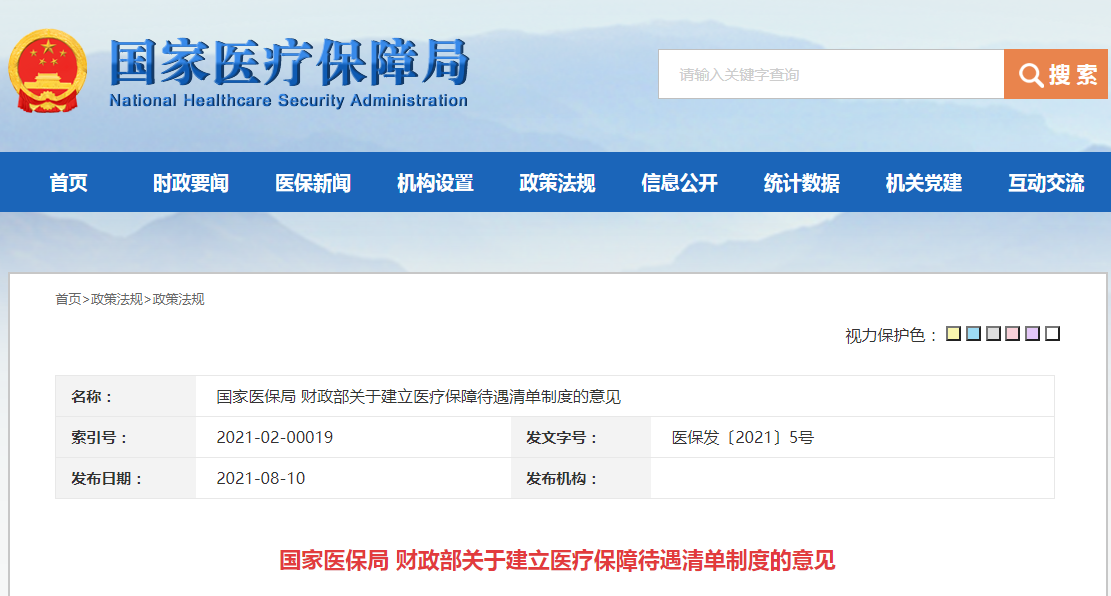 8月10日,国家医保局和财政部联合发布了《关于建立医疗保障待遇清单制度的意见》。
