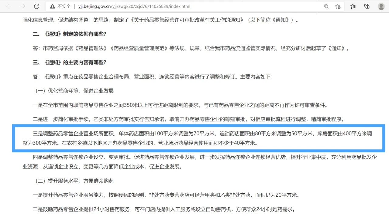 该市行政审批局也表示:“对药品零售企业经营场所面积的规定,一直是限制药店发展的重要因素之一,且不利于药店下沉乡(镇)市场,服务更多基层群众。”
